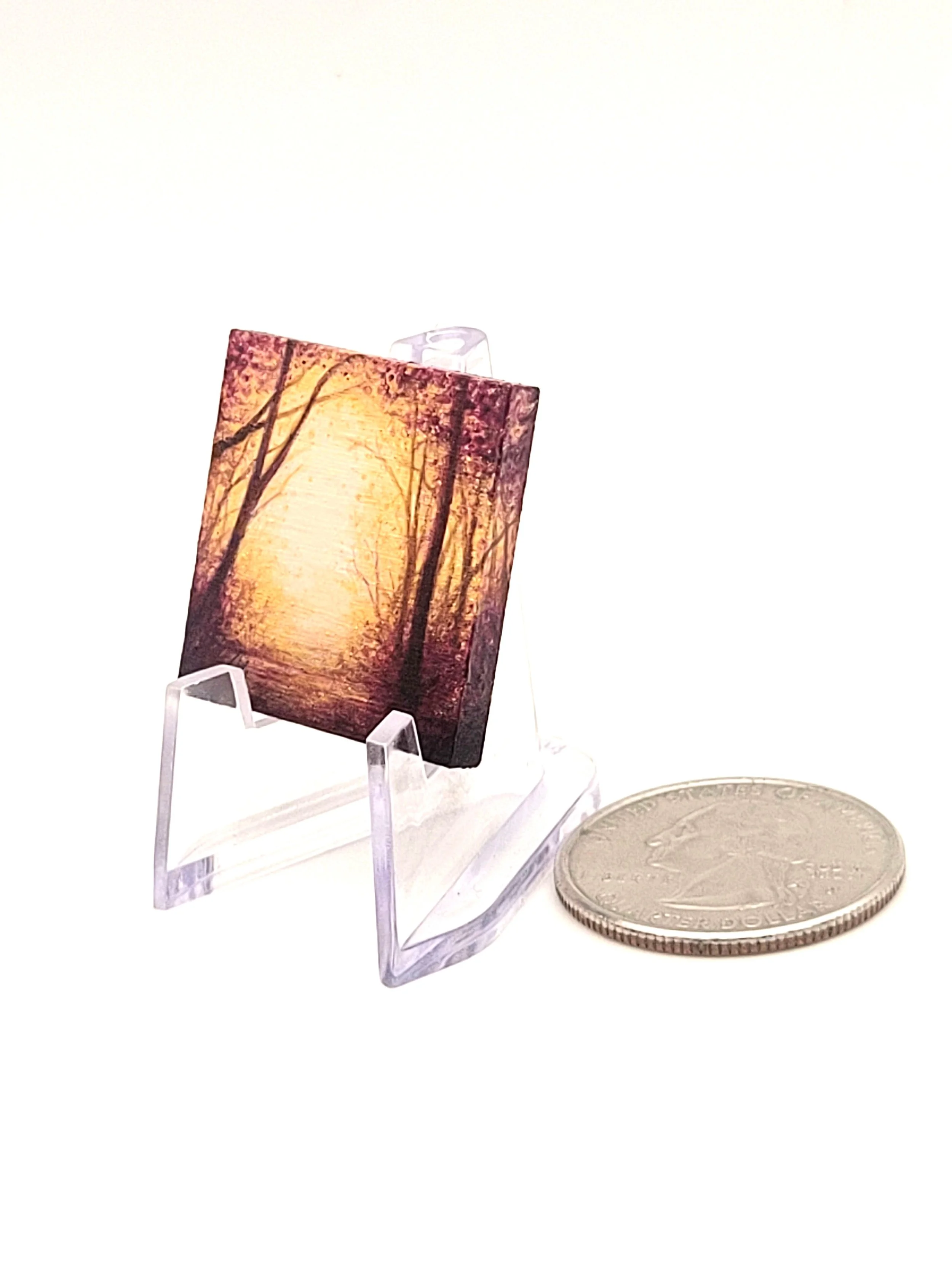 It has FINALLY happened, and I have discovered the perfect vessels to create my smallest pieces of perfectionism yet. The new sizes now available range from 1x1, 1x1.5, and 1x2 inches of gesso-primed, ampersand claybord. Ranging from a soft satin finish to a shining gloss varnish, these tiny worlds are sealed perfectly to be the tiniest possible professional pieces of fine-art. Every color palette so far has bled into these EXTRA miniature works, and more are on the horizon.