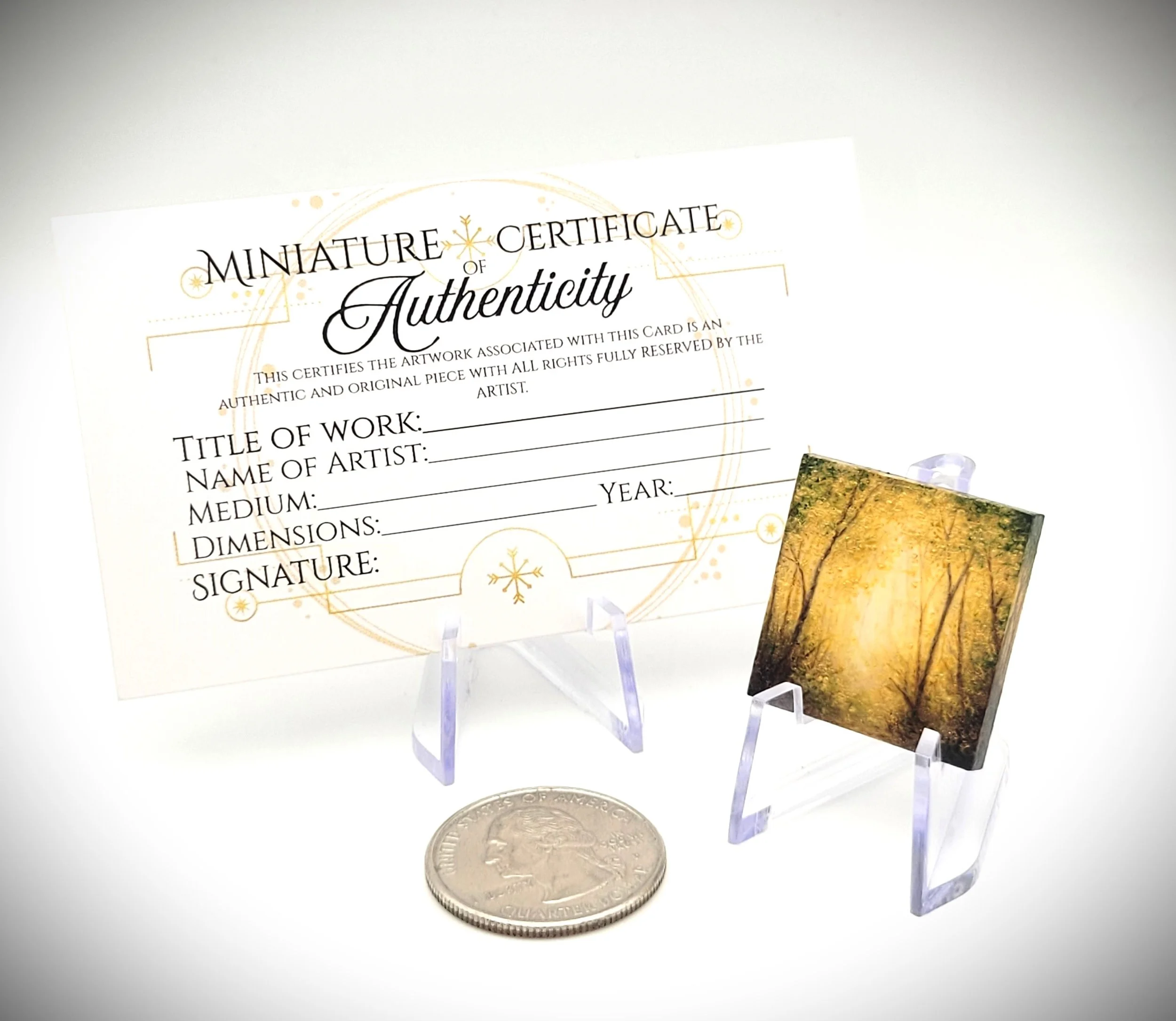 *Each individual painting comes with a MarrowMaker LLC Certificate of Authenticity. The Certificates for Miniature and Micro works are Business-card sized and adorned with the official LLC branding, Artist signature and general product information.*